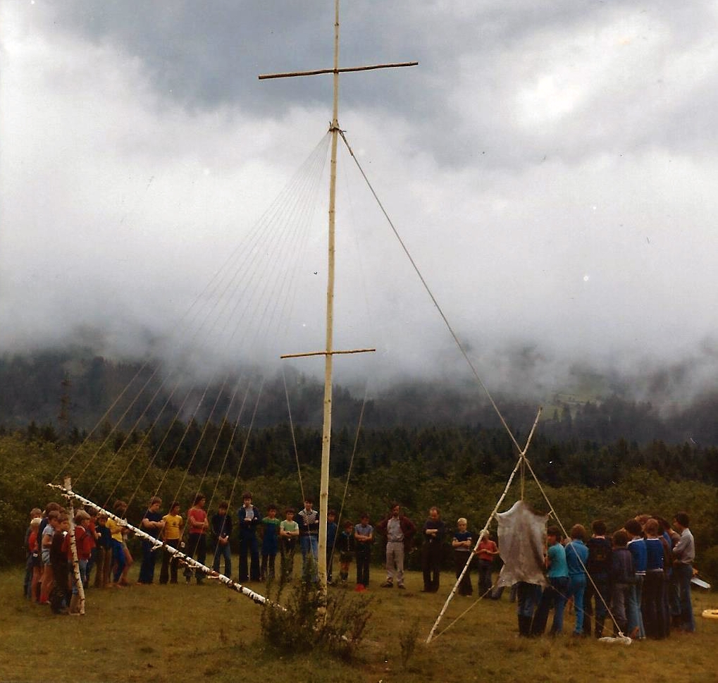 Georg Peer non fu una figura priva di controversie: era anticonvenzionale. Trovava sempre idee originali – come la discesa in zattera sull’Adige fino all’Adriatico, i viaggi in carrozza, i carri di carnevale grandiosi, le leggendarie feste del lunedì di Carnevale, le meditazioni con fiaccole sul Cammino di Gesù, le indimenticabili Messe all’aperto durante i campi scout e dei chierichetti. L’idea scout l’aveva conosciuta nel 1969, durante i corsi DPSG in Germania, e l’aveva portata in Alto Adige all’inizio degli anni ’70. Per questo è chiamato il nonno della Südtiroler Pfadfinderschaft, fondata il 25 aprile 1973. Il primo corso per capigruppo – allora ancora per la Jungschar cattolica – l’ho fatto con lui a Lichtenstern nel 1969/70, in seguito anche un corso per campi a Stanga presso Vipiteno. Con lui era sempre un’esperienza impressionante. Insieme a Siegfried Christanell ha fondato e rafforzato il gruppo scout di Naturno, come ha sottolineato Michael. Il campo scout di Naturno nacque su sua iniziativa. Il campo diocesano Fort Scout del 1975 a Gais fu una sua creazione: 70 scout di Naturno, Haslach e Brunico costruirono un forte con una palizzata. I momenti salienti furono la corsa all’oro nel gioco nel bosco, il fire rodeo alla festa sportiva e, infine, il training scout Hitch Hike di due giorni. Come da tradizione scout, ogni squadriglia cucinava da sé.