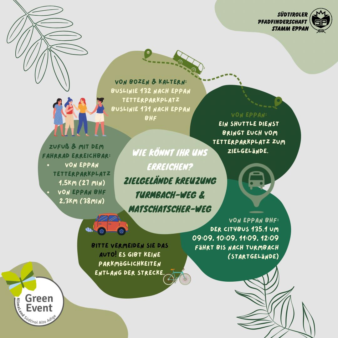 – bitte vermeidet die Anreise mit dem Auto, kommt mit dem Fahrrad, mit dem Bus, zu Fuß oder auch mit dem Shuttle Dienst