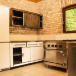 - Cucina: edificio separato con attrezzatura completa (1 piccola stufa a legna, 1 grande fornello a gas con 4 fuochi e forno, 2 grandi lavandini, 1 frigorifero, 1 tavolo per 6 persone); ⚠️ stoviglie e pentole non incluse!