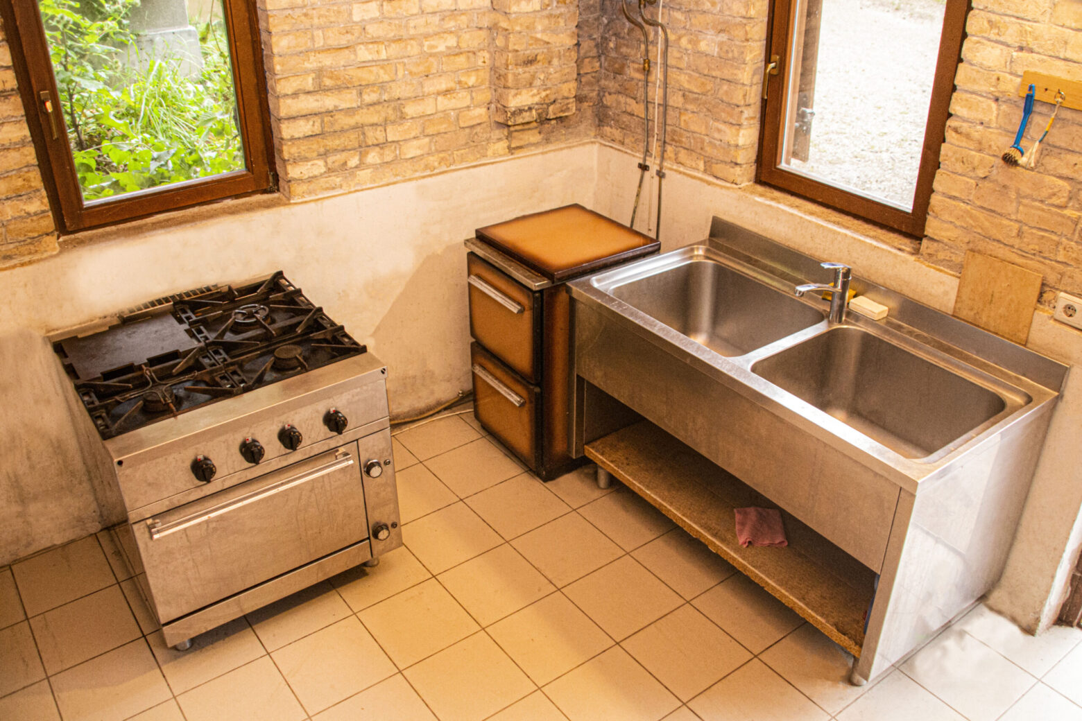 - Cucina: edificio separato con attrezzatura completa (1 piccola stufa a legna, 1 grande fornello a gas con 4 fuochi e forno, 2 grandi lavandini, 1 frigorifero, 1 tavolo per 6 persone); ⚠️ stoviglie e pentole non incluse!